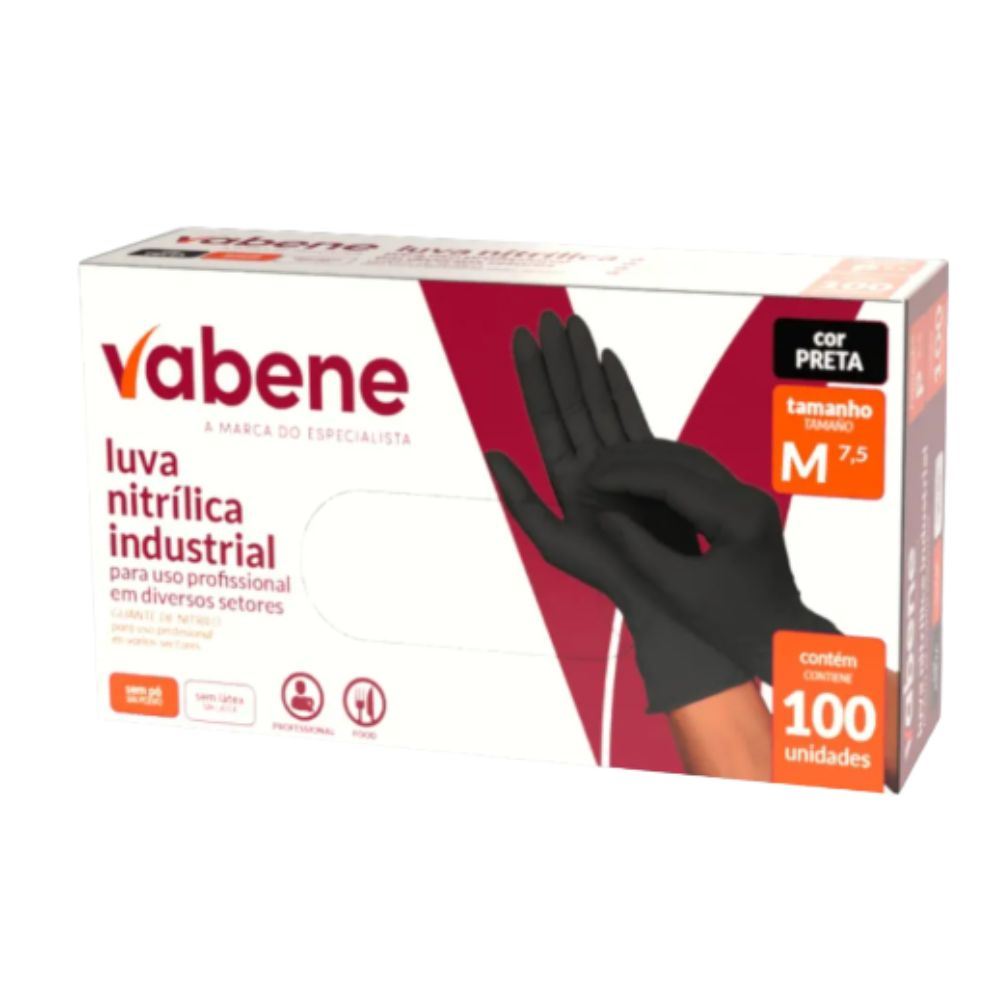 LUVA NITRILICA PRETA M VABENE 100UN